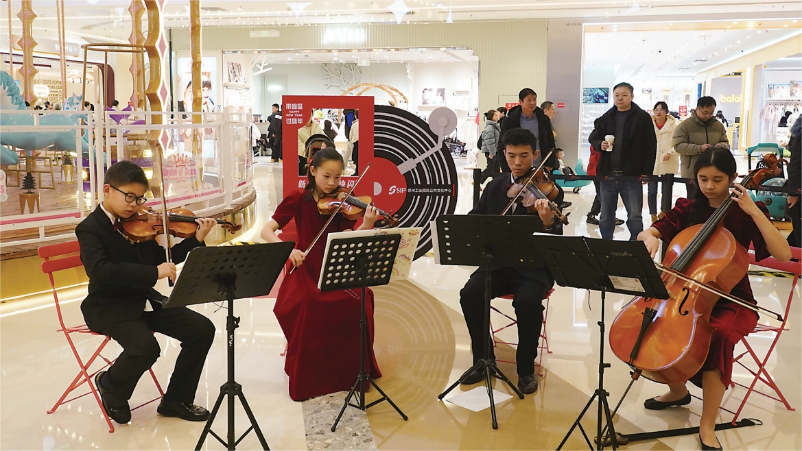 昨日(2月3日),一場小型交響音樂會在蘇州中心舉行,樂手們的精彩演奏贏得在場市民陣陣掌聲。