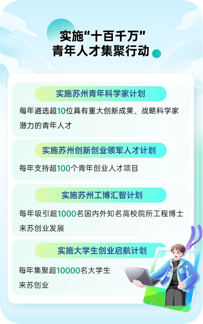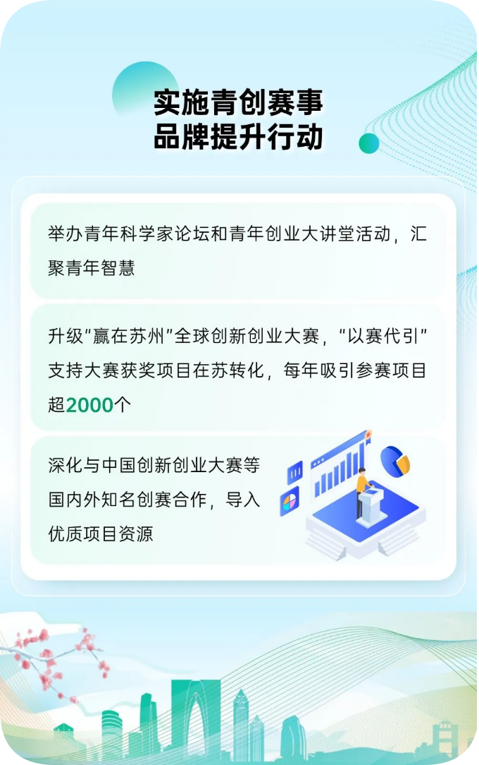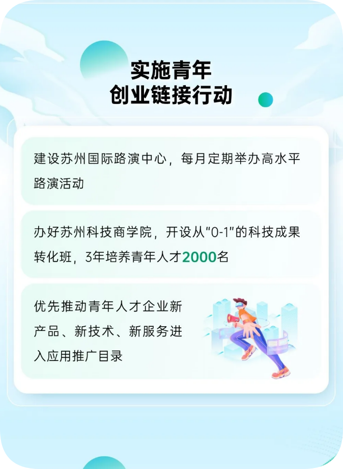 (3)優(yōu)先推薦申報蘇州創(chuàng)新創(chuàng)業(yè)領軍人才計劃、“江蘇省高層次創(chuàng)新創(chuàng)業(yè)人才引進計劃”、江蘇“青年雙創(chuàng)英才”以及“創(chuàng)青春”系列大賽。