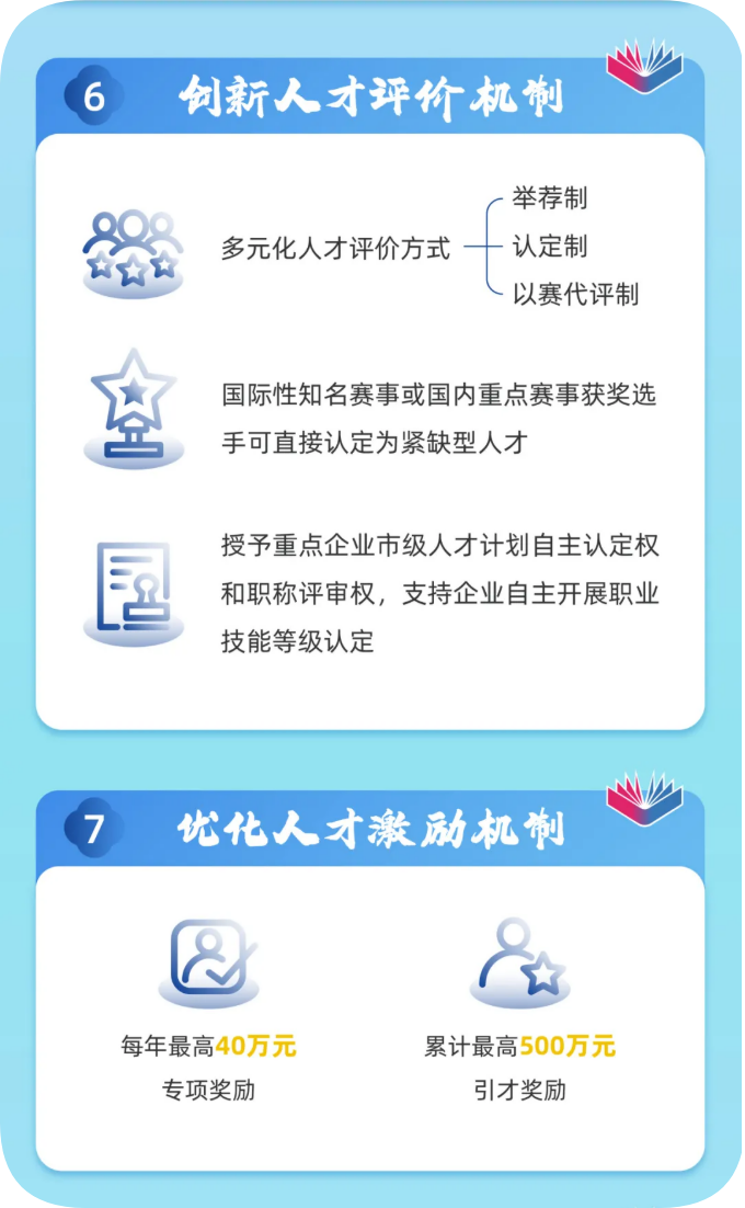 頂格支持人工智能領域頂尖人才,給予3000萬元~1億元項目資助和300萬元~1000萬元購房補貼。