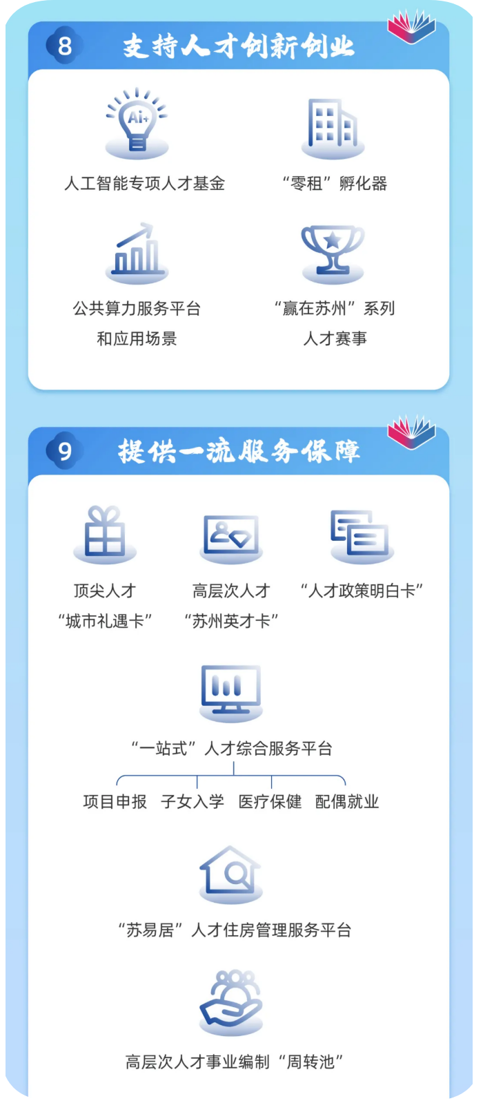 人才憑卡享受醫(yī)療保健、子女教育、園林游覽、交通出行、科技文獻、金融服務等專屬定制服務。