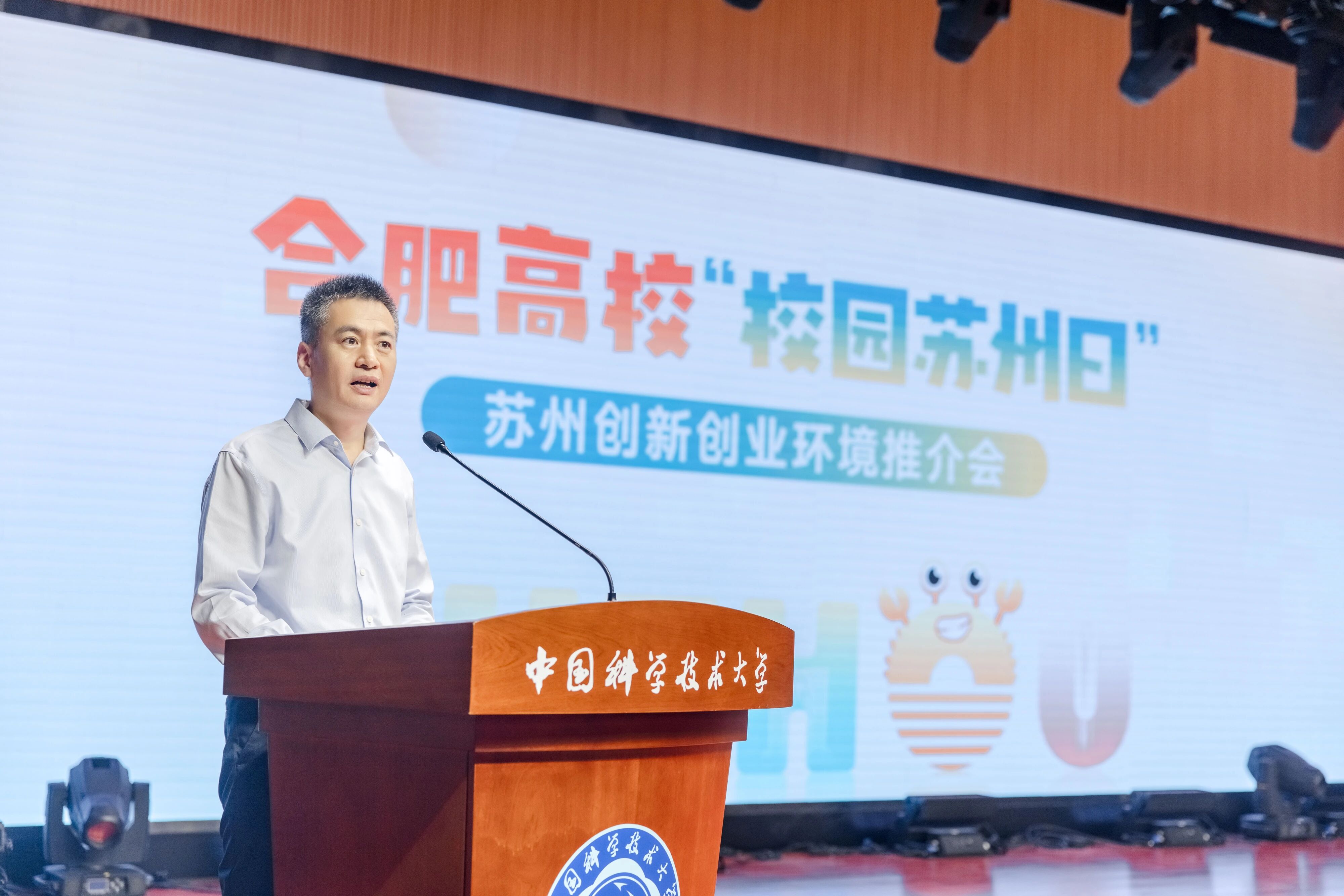 祁松在致辭時向合肥高校對蘇州發(fā)展給予的關(guān)心支持表示衷心感謝,向老師同學(xué)們的到來表示熱烈歡迎。“江淮同脈,科創(chuàng)同源”,蘇州與合肥高校的合作,已沉淀為二十余載的攜手同行。合肥眾多高校已成為蘇州創(chuàng)新發(fā)展的“智囊團(tuán)”與“人才庫”,近三年平均每年有約7000位合肥高校優(yōu)秀校友選擇扎根蘇州。今日蘇州,努力構(gòu)建創(chuàng)新矩陣、聚力發(fā)展產(chǎn)業(yè)集群、全力優(yōu)化人才生態(tài),誠摯邀請合肥學(xué)子將蘇州作為事業(yè)發(fā)展的新起點(diǎn),無論就業(yè)還是創(chuàng)業(yè),蘇州都將竭盡所能守護(hù)好大家成長的每一步,助力加油、保駕護(hù)航。