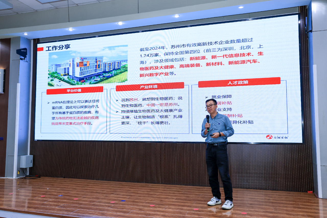南開大學校友、蘇州艾博生物科技有限公司化學高級總監王春貴分享了他與蘇州的故事,歡迎學弟學妹選擇蘇州。用人單位代表昆山丘鈦微電子科技股份有限公司、大秦數字能源技術股份有限公司進行精彩推介,生動詮釋了蘇州的尖端創新實力與澎湃產業動能。