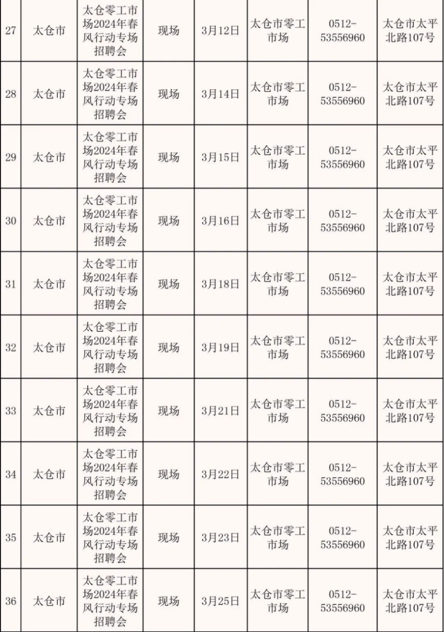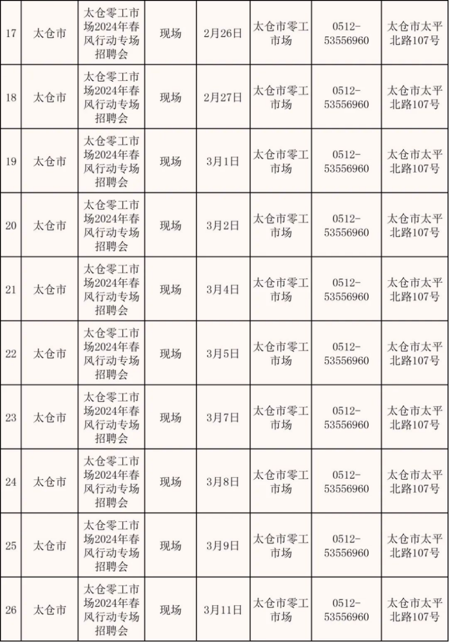 蘇州市2024年春風(fēng)行動(dòng)零工市場(chǎng)招聘會(huì)日歷