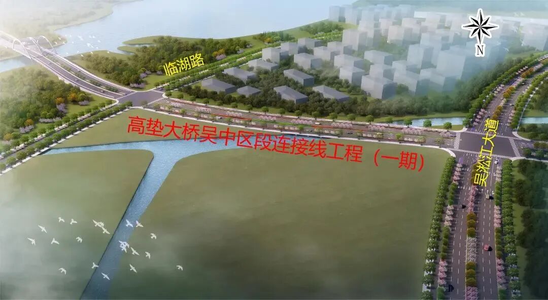 高墊大橋及連接線工程項目位于蘇州工業園區、吳中區分界處,項目按一級公路兼城市主干路標準建設,北起高墊大橋引橋西側臨湖路交叉口,南至吳淞江大道東側人行道邊,路線全長約413.4米。工程主要包含通墅河橋和油管保護橋兩座關鍵橋梁。