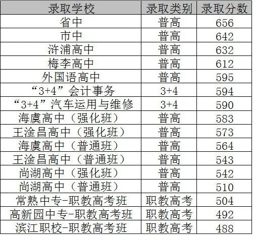 普通高中(其他計劃)、職業學校綜合高中(中職職教高考)班、中職與普通本科“3+4”分段培養項目,根據常熟市考生的中考成績總分從高分到低分排序,按志愿按計劃從高分到低分錄取。