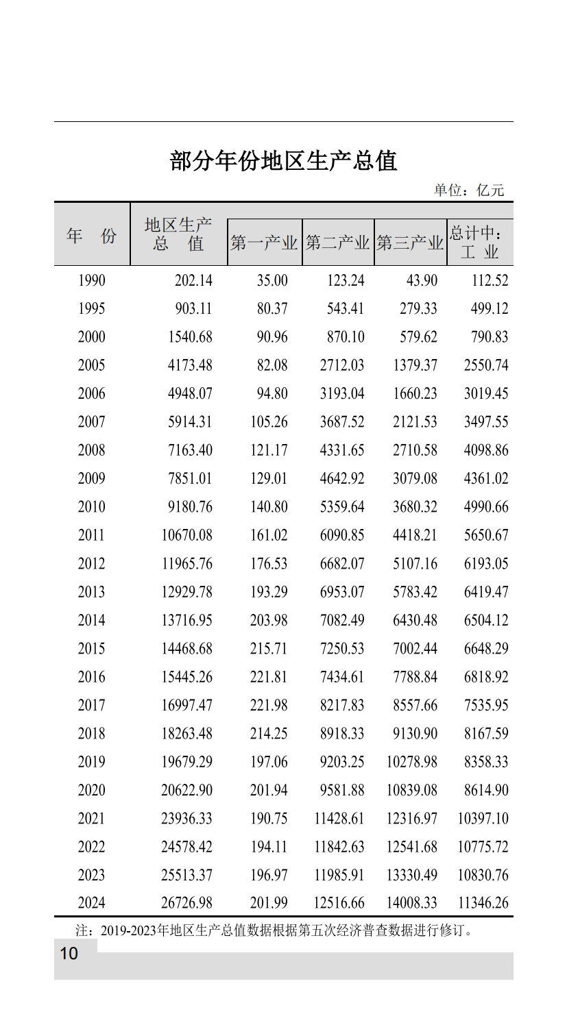 部分年份地區(qū)生產(chǎn)總值