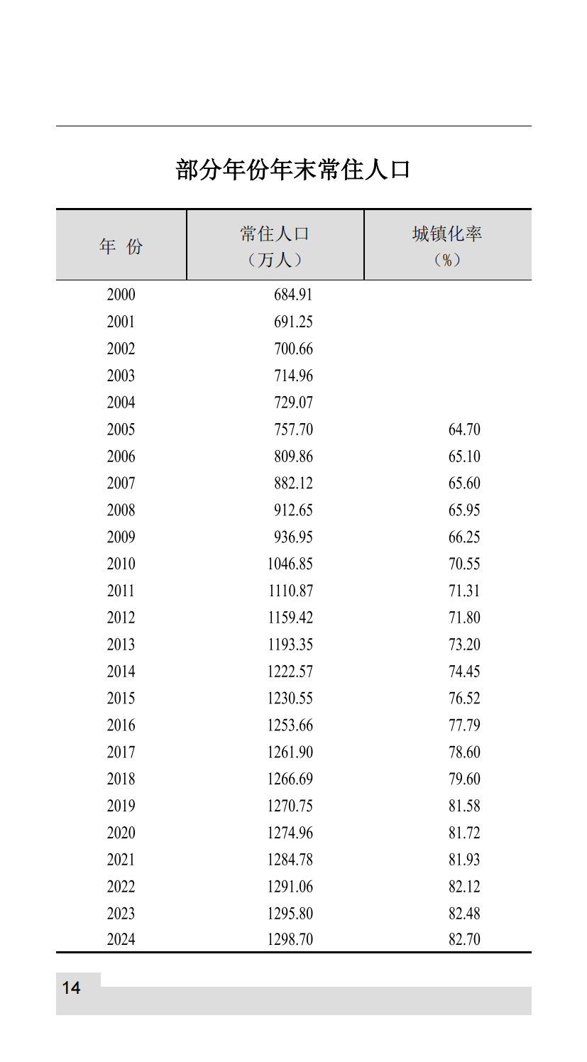 部分年份年末常住人口