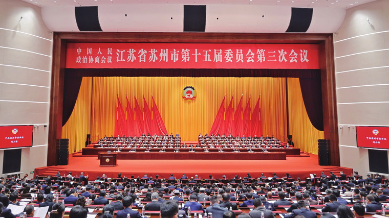 在全市上下深入學習貫徹習近平總書記對江蘇、蘇州工作重要講話重要指示精神,奮力譜寫“強富美高”新蘇州現代化建設新篇章關鍵時刻,中國人民政治協商會議江蘇省蘇州市第十五屆委員會第三次會議昨天(1月15日)在蘇州國際會議酒店開幕。來自全市各界別的政協委員為蘇州在中國式現代化走在前、做示范中當好排頭兵,建睿智之言,獻務實之策。中共蘇州市委書記劉小濤到會祝賀并講話。市政協主席朱民代表市十五屆政協常務委員會向大會作工作報告。