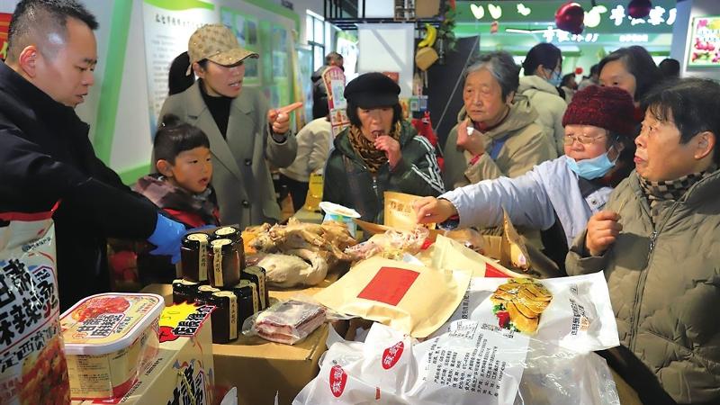 昨天(1月19日),市民在“福蛇迎春”2025蘇州供銷年貨大集上購買年貨,此次年貨大集展出近300種農副產品,吸引不少市民前來選購。