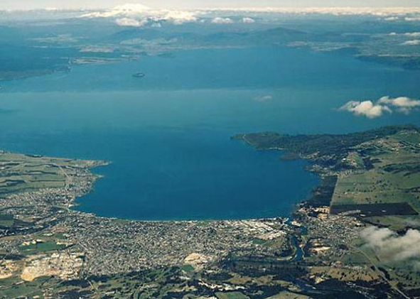 火山地區北面是浩瀚的陶波湖(Lake Taupo),巨大的火山湖是火山大爆發后形成的湖泊。當地仍然有氣泡冒出來,說明有地熱活動。陶波湖占地619平方公里,是新西蘭第一大湖泊。位于湖泊東岸的城鎮常年旅游活動不斷,游客夏天來乘坐噴射快艇、滑水和釣鮭魚,到冬天就成了滑雪愛好者的大本營。